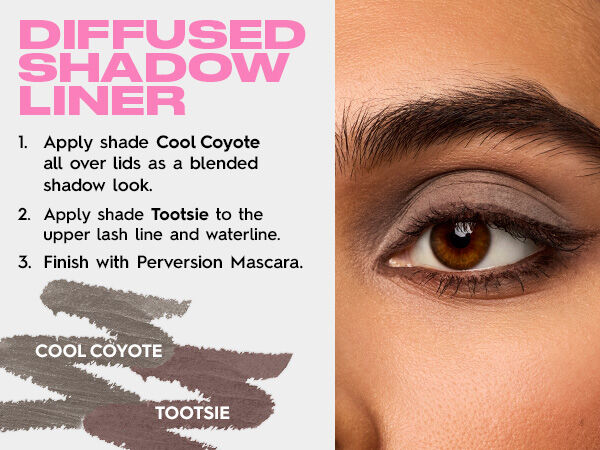 • Apply Legend (black), Tootsie (dark brown), or Cool Coyote (gray) in a thicker line along the waterline and smudge it out slightly to create a smokey effect. Make sure to blend before the pencil sets. This look is sultry and suitable for evening events, adding a touch of drama to your eyes. - How to Brighten Eyes: