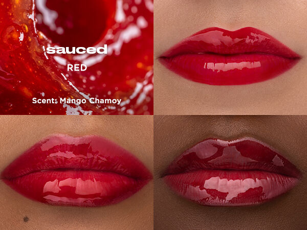 Sauced: POLYBUTENE, DIISOSTEARYL MALATE, TRIDECYL TRIMELLITATE, HYDROGENATED POLYISOBUTENE, OCTYLDODECANOL, SILICA DIMETHYL SILYLATE [NANO] / SILICA DIMETHYL SILYLATE, BUTYLENE GLYCOL, GLYCERYL CAPRYLATE, PARFUM / FRAGRANCE, DIGLYCERYL SEBACATE/ISOPALMITATE, CI 15850 / RED 7 LAKE, CI 15985 / YELLOW 6 LAKE, MICA, CITRIC ACID, CERAMIDE NP, TOCOPHERYL ACETATE, PINENE, RICINUS COMMUNIS SEED OIL / CASTOR SEED OIL, CI 45410 / RED 27, SODIUM SACCHARIN, SODIUM HYALURONATE, LINALOOL, COLOPHONIUM / ROSIN / COLOPHANE, HYDROGENATED CASTOR OIL, ROSE KETONES, CARVONE, LIMONENE, PANTHENOL, TOCOPHEROL