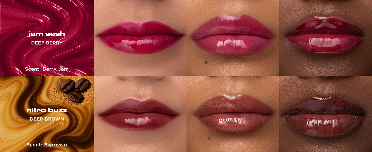 Find your signature look and scent with our curated collection of 8 unique and irresistible shades. Whether you're looking for a subtle, clear shimmer or a bold, high-impact stain, we have a delicious scent story for you.