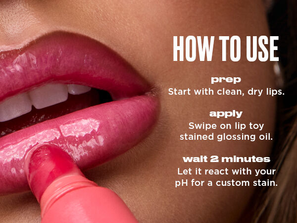 - Step 2: Swipe on Lip Toy pH Staining Lip Oil, coating lips evenly.