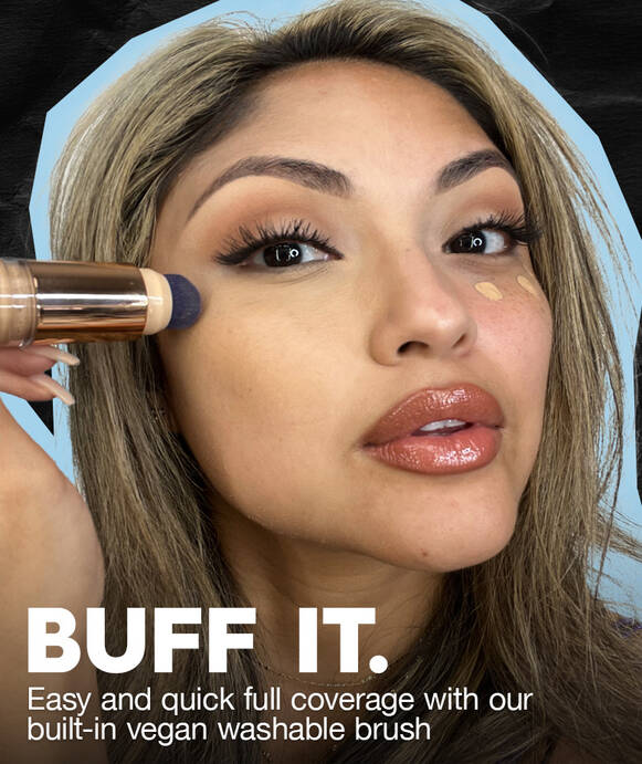 Go faster and stay longer with our NEW Quickie 24-hour longwear concealer. The first of its kind, each Quickie Concealer comes with a dual-ended applicator for convenient and on-the-go coverage – so you can Tap it. Buff it. and be done for up to 24-hour wear. Infused with vitamin E, experience a full-coverage formula that hydrates your skin all day long.